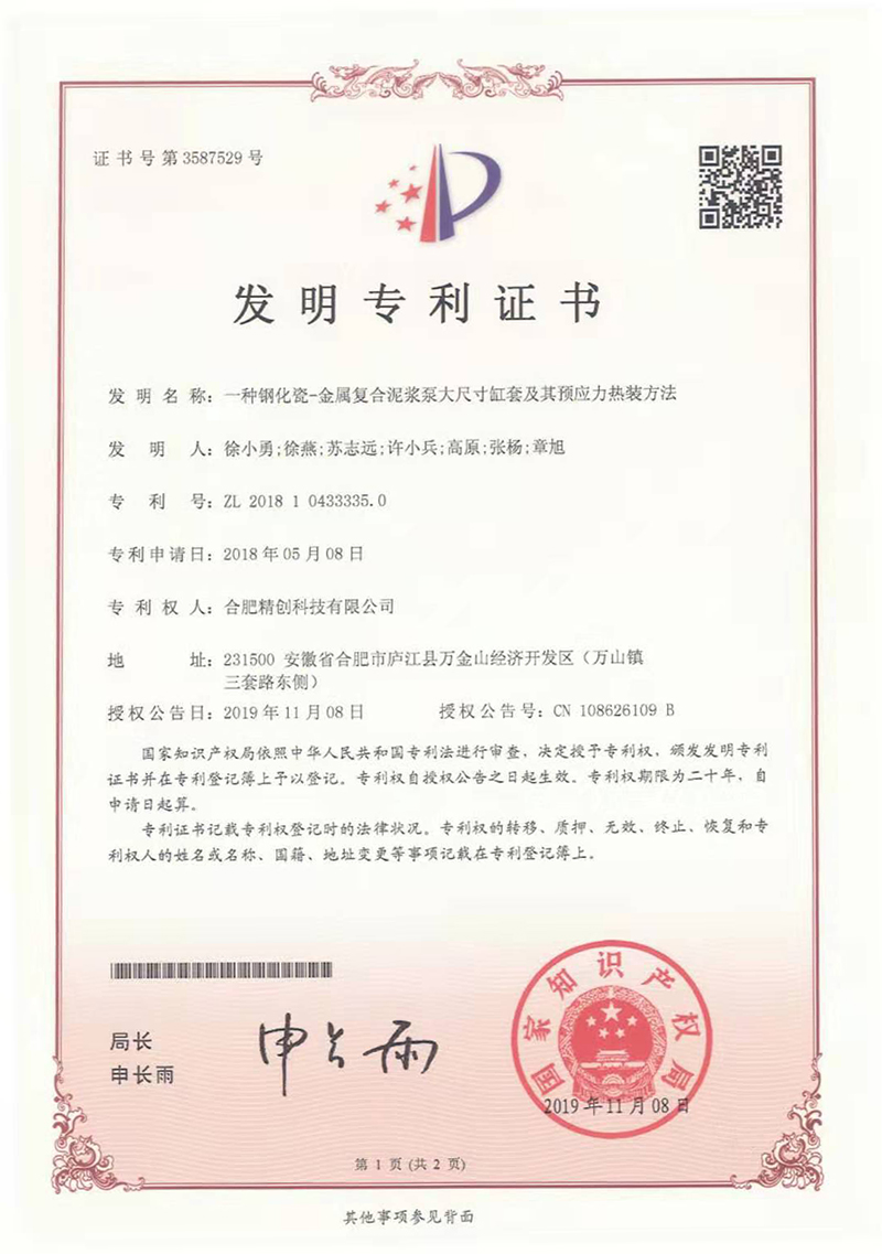 (2018發(fā)明專利)一種鋼化瓷-金屬?gòu)?fù)合泥漿泵大尺寸缸套及其預(yù)應(yīng)力熱裝方法